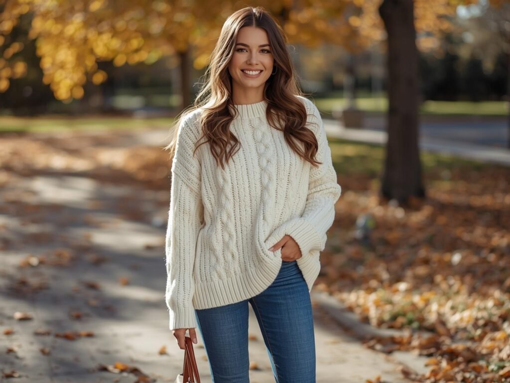 - Effortlessly Stylish: The oversized fit and cable knit texture do all the work for you. You can throw it on with jeans and look instantly put-together, making it a cornerstone of easy fall fashion outfits.
